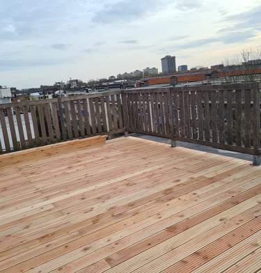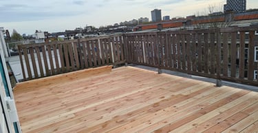 In onze hoofdstad hebben wij bij onze klant een prachtig dakterras aangelegd. Dit stalenconstructie, composiet houten vloer en een mooi opmaat gemaakt hekwerk.