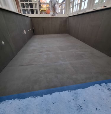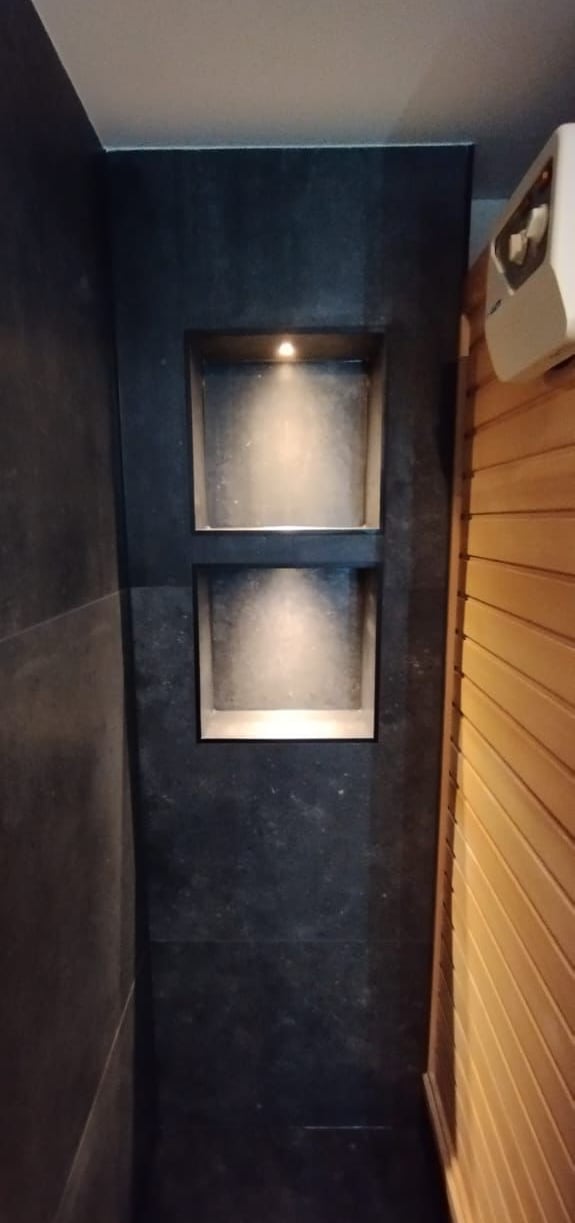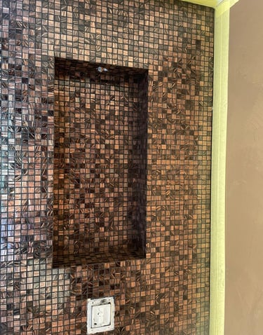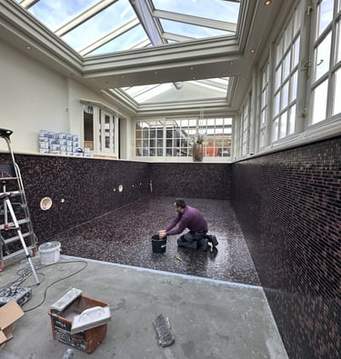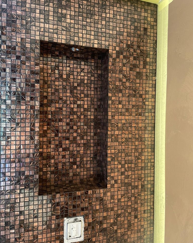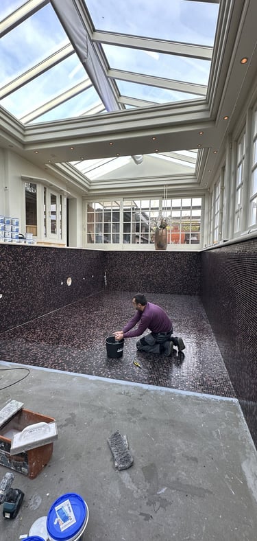 Vanaf het aanbrengen van de waterdichte onderlagen tot het opleveren van met epoxy verwerkte 1x1cm mozaïek. Ook hier mogen wij ons vakwerk laten zien.