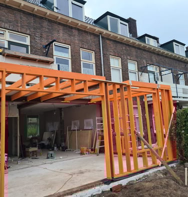 In Utrecht zijn wij op dit moment bezig met een volledige renovatie van een woning en plaatsen hier ook een uitbouw. De constructie is opgeleverd en goedgekeurd door de gemeente.