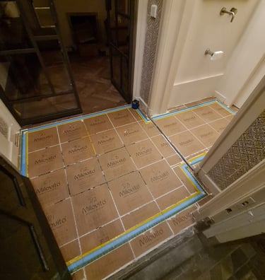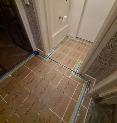 Net voor het eind van het jaar (2022) hebben wij een unieke mozaïek vloer opgeleverd in Amsterdam. Alle ontwerpen van Milovito zijn handgemaakt en worden door onze mannen vakkundig geplaatst.